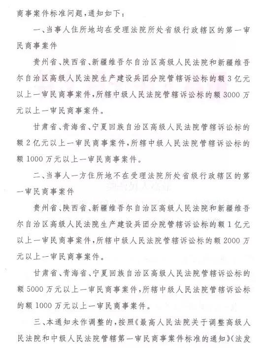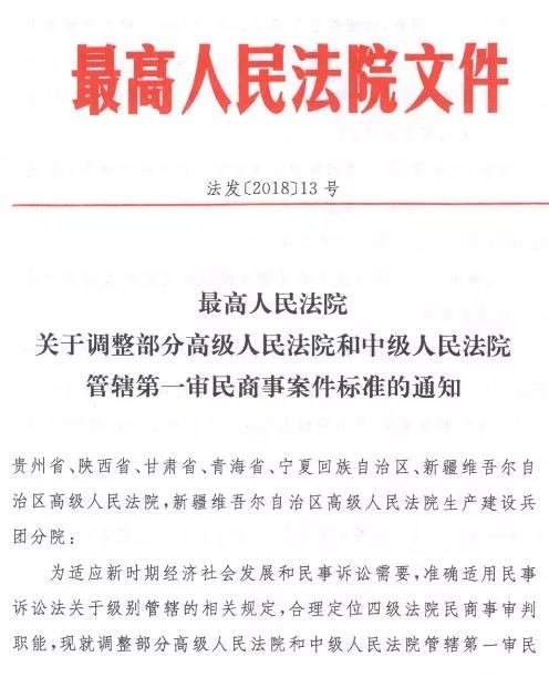 最新!最高法调整部分高院中院管辖第一审民商事案件标准